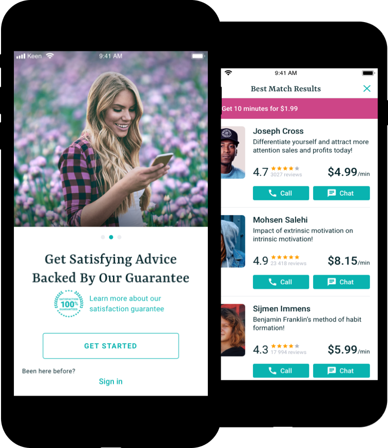 Keen - це безкоштовний додаток, який надає користувачам можливість спілкуватися з психологами у чаті, обираючи їх на основі профілів, відгуків та рейтингу. Більш того, ми додали алгоритм, який пропонує найрелевантніші засоби, залежно від потреб користувача.